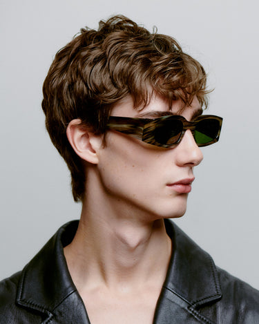 ALEX är ett robust och muskulöst unisex-stycke för dem som föredrar en större, men ändå slank stil. Det är den perfekta kombinationen av mjukt och kantigt med en rund, men samtidigt linjär ram, större linser och breda skalmar.