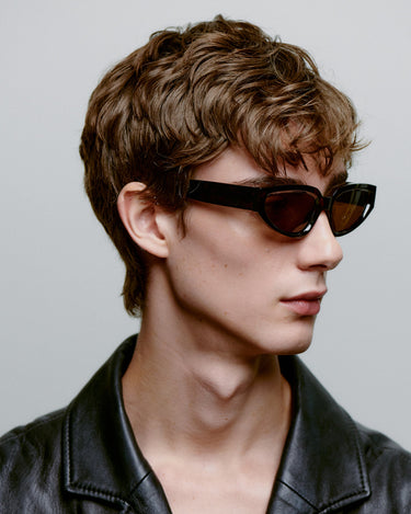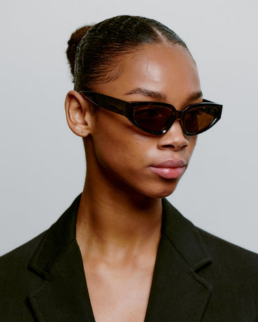 Ett lite större, klassiskt men ändå trendigt par med smala ovala cateye-glas i en upprätt, robust båge med breda skalmar som tillsammans skapar en stark men ändå feminin look.