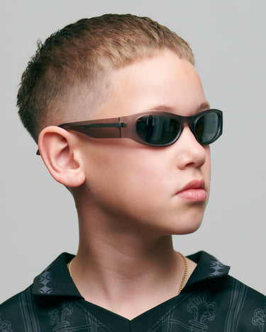 Alla våra glasögon tillverkas av BPA-fria och nickel-fria material för att undvika allergi. Gust Junior är en smal 90-talsinspirerad solglasögon med attityd.