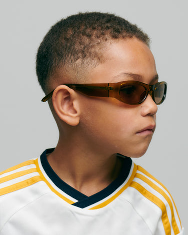 Alla våra glasögon tillverkas av BPA-fria och nickel-fria material för att undvika allergi. Gust Junior är en smal 90-talsinspirerad solglasögon med attityd.