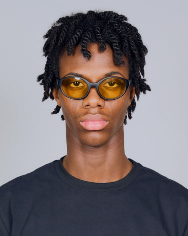 Stamina - Matte Black med gule linser (A.KJÆRBEDE X ÖHOUSE) er en markant, afrundet sportsmodel med høj energi og et kraftfuldt udtryk. De bløde kurver kombineret med reflekterende linse-look giver en tydelig profil, der føles både aktiv og stilbevidst. Stamina er skabt til dig, der bliver ved - og som vil have en sportsbrille, der både performer og ser skarp ud.