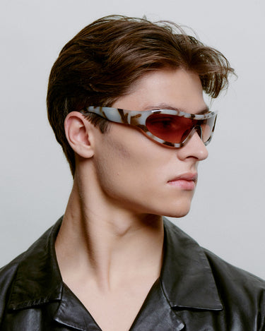 Devon - Cookie Dough är en distinkt wraparound-modell med sportig retrolook. Den svängda designen följer ansiktet och kombinerar mode och funktion. Ett statement-solglasögon för aktiva dagar och en urban vardagslook.
