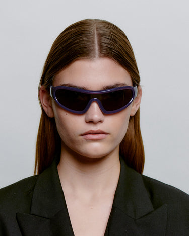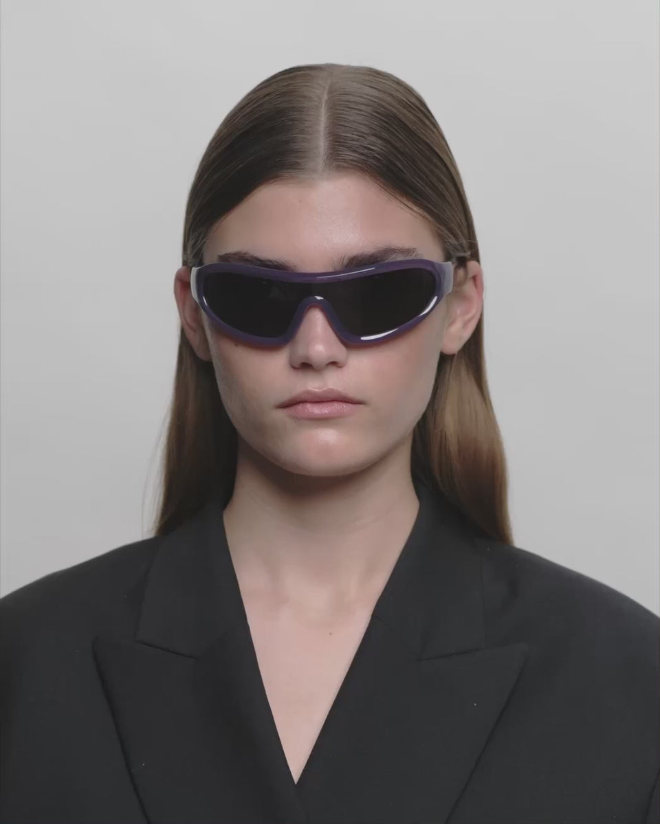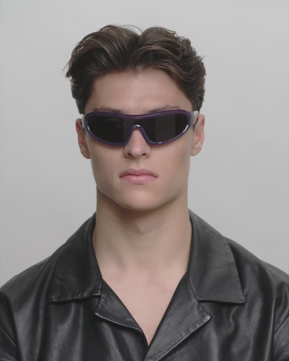 Devon - Shadow är en distinkt wraparound-modell med en sportig retrolook. Den svängda designen följer ansiktet och kombinerar mode och funktion. Ett statement-solglasögon för aktiva dagar och en urban vardagslook.