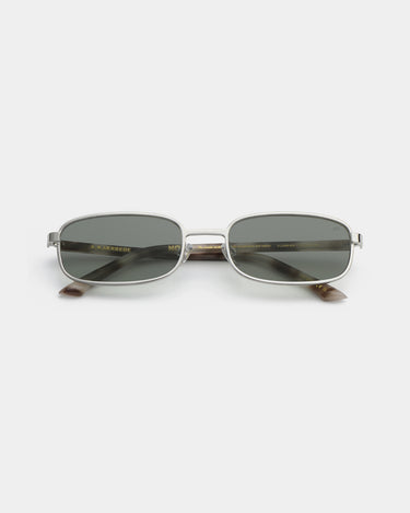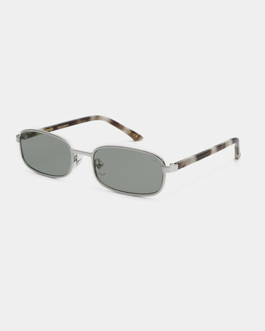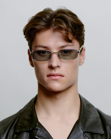 Noah - Silver Cookie Dough är en klassisk unisexdesign med en tydlig 90-talsinfluens och en cool, minimalistisk look. Den smala metallbågen och de små, fyrkantiga glasen ger en lätt och elegant look som fungerar för både små och stora ansikten utan att dominera. Noah är för dig som vill ha en snygg solglasögonmodell med en skarp silhuett och ett renare uttryck.