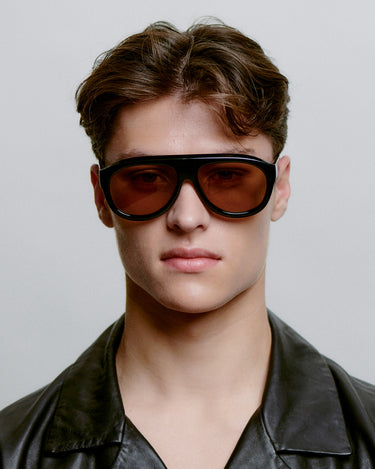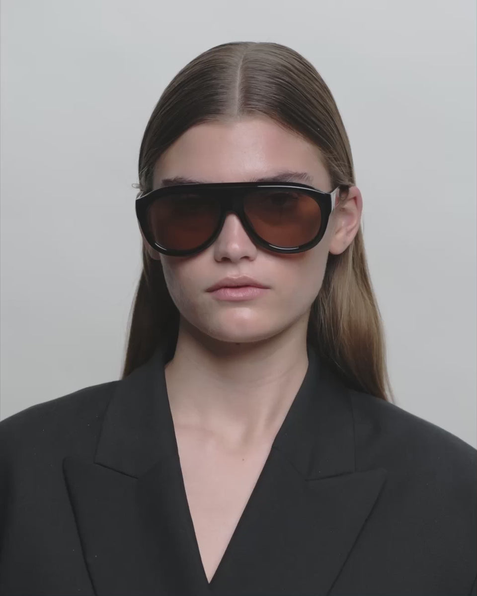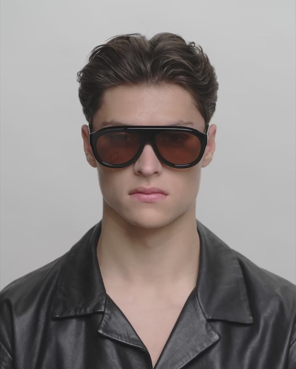 Rio - Black är en nytolkning av aviatorstilen med en distinkt och skulptural båge. Den stora silhuetten och den djupa acetaten skapar en iögonfallande look. Designad för soliga dagar och självsäker stil.