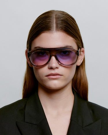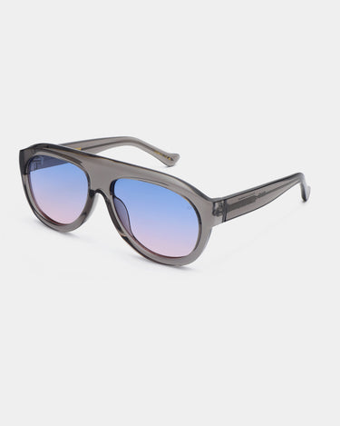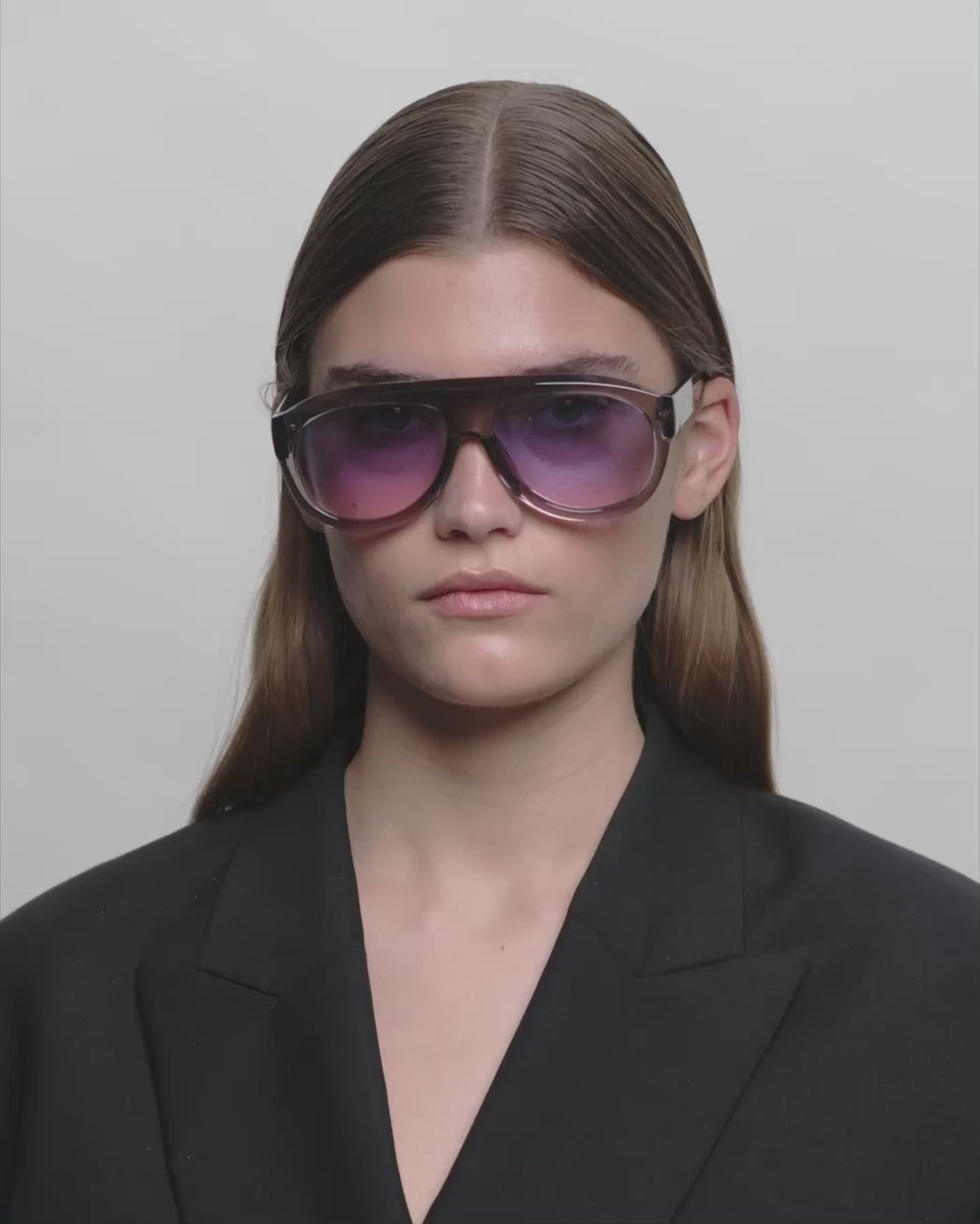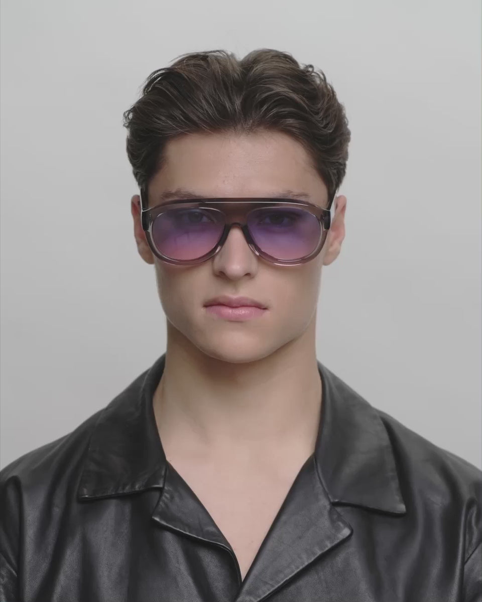 Rio - Grey Transparent är en nytolkning av aviatorstilen med en distinkt och skulptural båge. Den stora silhuetten och den djupa acetaten skapar en iögonfallande look. Designad för soliga dagar och självsäker stil.