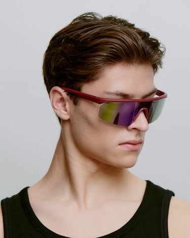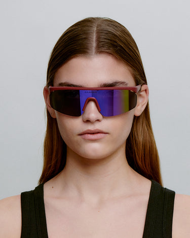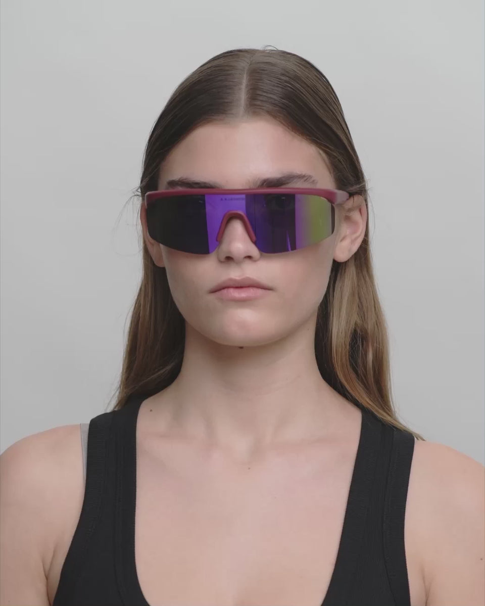 Rush - Boysenberry är en skarp, omslutande sportmodell gjord för rörelse. Den rena shieldlinsen och den matta finishen ger en futuristisk look, medan de funktionella detaljerna är byggda för höga pulsnivåer och föränderliga förhållanden. Rush är för dig som vill ha prestanda och stil i samma glasögon - både på träningen och på stan.